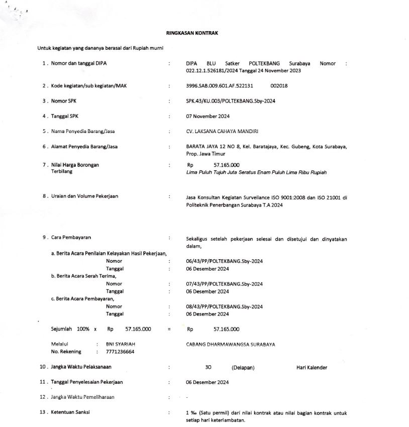 Pengumuman No. PG-Poltekbang.Sby 13 Tahun2025 Tentang Pelaporan Harta Kekayaan Pegawai